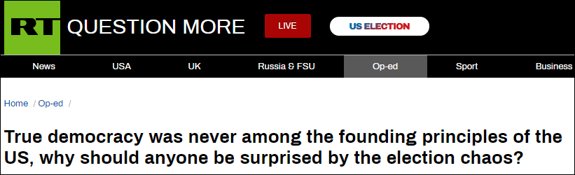 RT:真正的民主從來都不是美國的立國原則,為什麼有人會對選舉混亂感到驚訝?