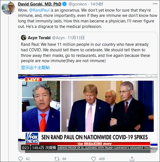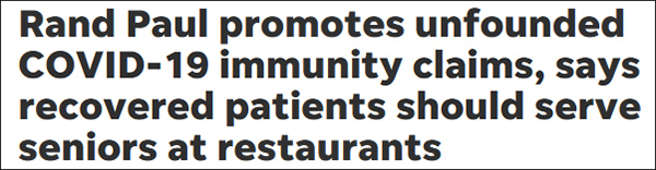 根據美媒以往的報道來看,蘭德·保羅無疑是個鼓吹羣體免疫、散佈錯誤信息的“慣犯”。