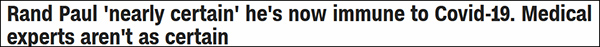 CNN:蘭德·保羅“幾乎斷定”自己已經免疫新冠,但醫學專家不這麼想