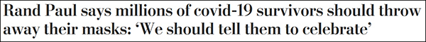“蘭德·保羅説感染過新冠的人應該扔掉口罩慶祝一下”,《華盛頓郵報》報道截圖
