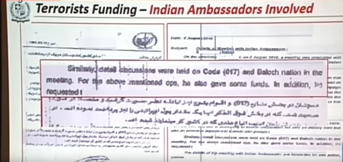 發佈會上,伊夫蒂哈爾展示了部分證據,其中包括印方資助恐怖分子資金的銀行收據,數張嫌疑人在印度駐阿富汗領事館內策劃襲擊的照片,以及一段據稱是印度情報官員和俾路支分離主義武裝分子頭目阿拉·納扎爾(Allah Nazar)通話的音頻。