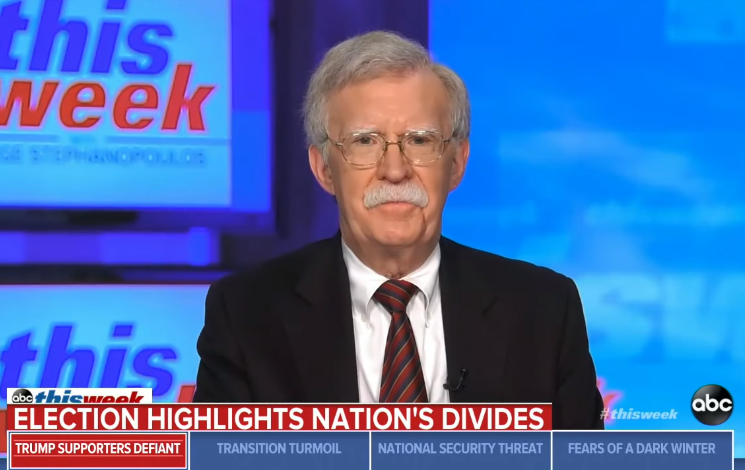 博爾頓當地時間15日接受採訪,呼籲共和黨承認拜登勝選 視頻截圖