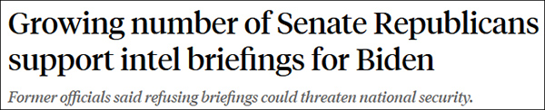 “更多共和黨參議員支持讓拜登獲取簡報”,11月13日ABC報道截圖