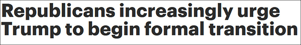 “越來越多的共和黨人催促特朗普開啓過渡程序”,《國會山報》報道截圖