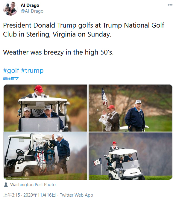 值得一提,根據追蹤美國總統行程的訊息網站Factbase數據,特朗普自11月3日大選日後,已經打了4天高爾夫。整個任期內截至目前,他打了310次高爾夫。