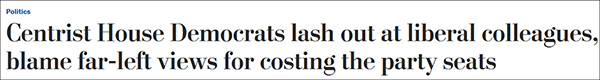 “温和派民主黨人批評進步派的‘極左政策’丟掉了席位”,《華盛頓郵報》報道截圖