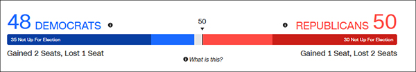 在大選日(11月3日)當天,美國參議院也舉行選舉改選35個席位。民主黨只擴大了兩個席位,形成了48對50的局面,共和黨暫時是“守住了”參議院。美媒指出,明年1月5日佐治亞州還將舉行兩個席位的選舉,這將最終決定參議院局勢。而在拜登當選美國總統的情況下,民主黨需要奪回佐治亞州全部2個參議院席位。相反,對於共和黨來説,拿下其中之一即可。若共和黨成功“守下”參議院,以麥康奈爾為首的共和黨籍立法者,將會構成拜登後續立法議程上的阻礙。
