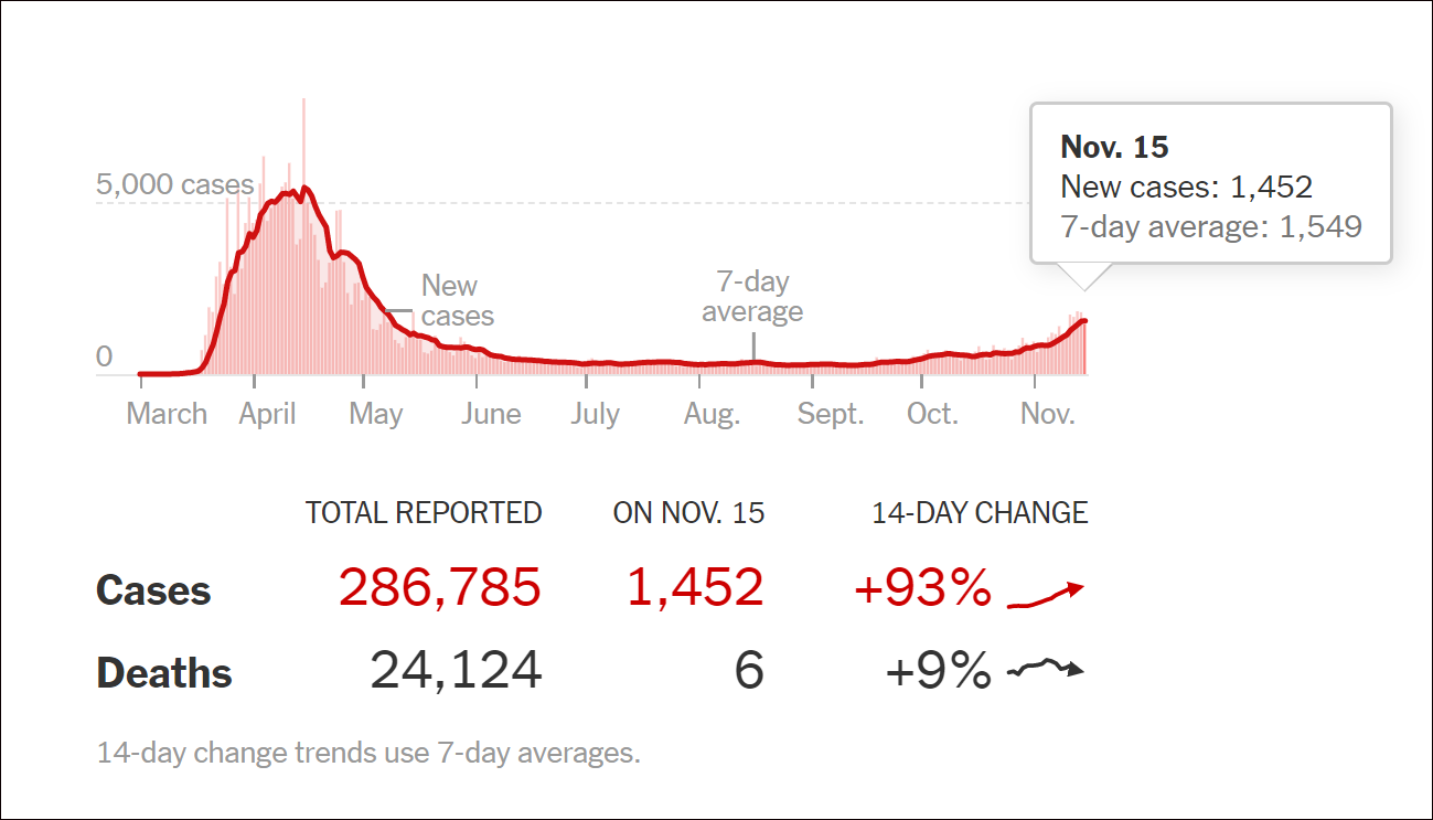 《紐約時報》數據:紐約市迎來“第二波”疫情高峯
