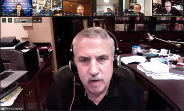 **編者按:**2020年11月11-12日,由全球化智庫(CCG)主辦的第六屆中國與全球化論壇在北京舉辦。11日中美線上論壇的自由發言期間,《紐約時報》專欄作者托馬斯·弗裏德曼和香港恆隆集團董事長陳啓宗就中美關係的未來走向相繼發表個人看法,內容十分精彩,觀察者網特此整理二人發言,並將分別予以發佈,供讀者參考。