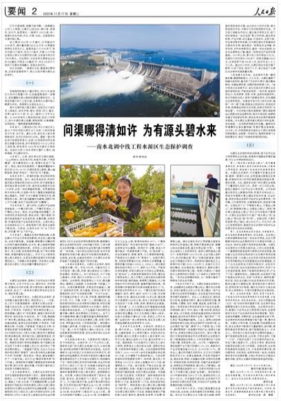 17日,人民日報第二版整版刊發調查報道《問渠哪得清如許 為有源頭碧水來——南水北調中線工程水源區生態保護調查》。報道稱,從2005年庫區工程啓動時起,經過15年努力,如今水源區青山如黛、綠樹成蔭、水流清澈、鳥鳴悠悠,一幅秀美畫卷展現眼前。全文如下: