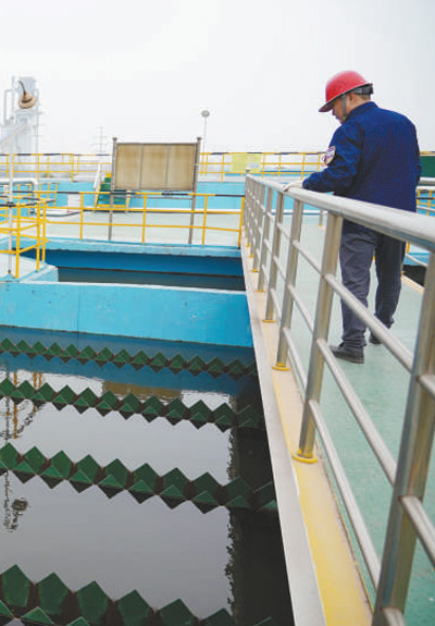 2019年1月9日,陝鋼集團工作人員查看中央水處理系統生產廢水澄清池。近年來,陝西漢中、安康持續推進南水北調中線工程水源區生態保護。 新華社記者 邵瑞 攝