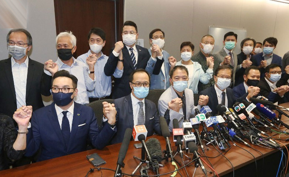 15名反對派議員宣佈“總辭”。(圖自光華網)