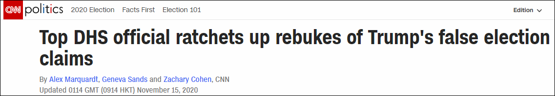 CNN:國土安全部高級官員加大對特朗普錯誤選舉主張的譴責