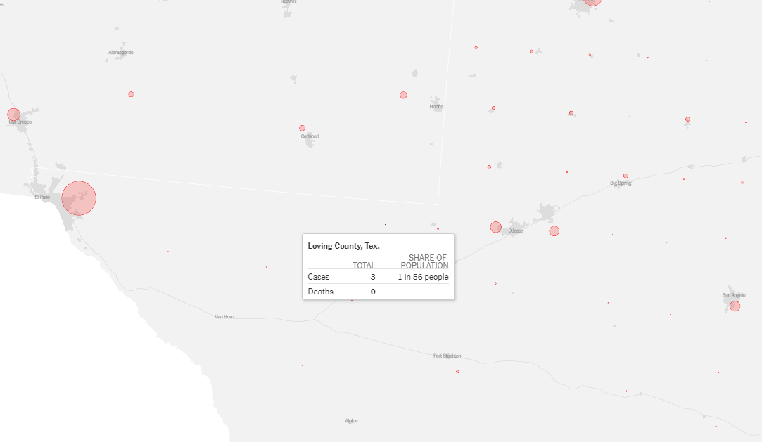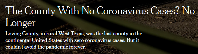 【編譯/觀察者網 郭涵】美國的新冠疫情急劇惡化。當地時間17日,得克薩斯州西北部一個不起眼的拉温縣(Loving County)通報3例新冠肺炎確診病例。根據官方統計,至此,美國本土所有縣級行政區劃均已全部出現新冠疫情。