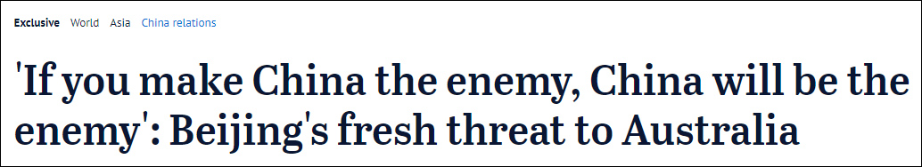 澳媒稱收到中國官員“威脅”:如果你把中國當敵人,中國就是敵人