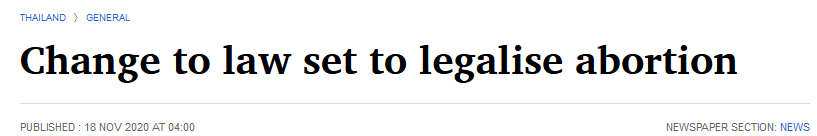 而內閣剛通過的《刑法》修正草案則降低了刑罰,未來非法墮胎,即在懷孕12周後仍墮胎的女性將被判最高6個月有期徒刑以及1萬泰銖。
