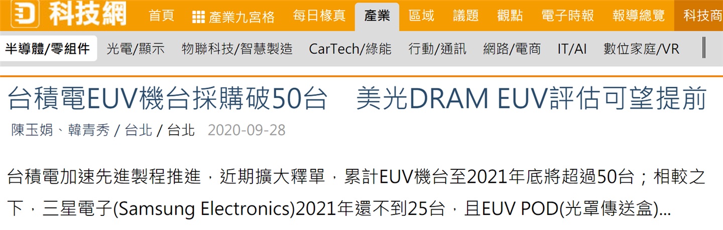 而根據台媒《DIGITIMES》9月底的報道,台積電也將擴大采購EUV設備,拿下ASML明年超過1/3的供貨,明年EUV機台數預計將達55台。