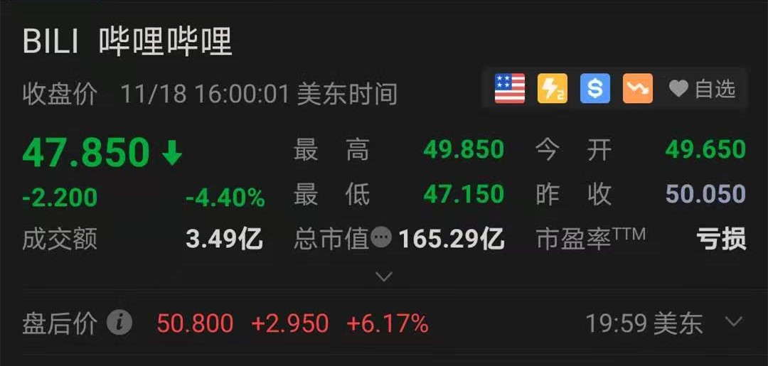 受強勁的業績表現影響,嗶哩嗶哩美股盤後漲超6%。