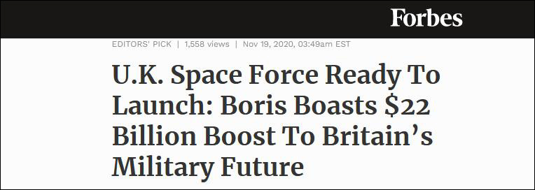 這筆預算部分將被用於成立一個研究人工智能的新機構、一支國家網絡部隊,和一個新的太空司令部,並致力於2022年自主發射火箭。《福布斯》新聞網認為,約翰遜這麼做是在追隨特朗普的腳步,特朗普2019年宣佈成美國太空軍,該機構在2020年初發射了其第一顆衞星。