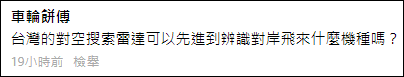 此外,還有網民發出疑問,台軍的“對空搜索雷達”可以先進到辨別解放軍飛來的是什麼機種嗎?