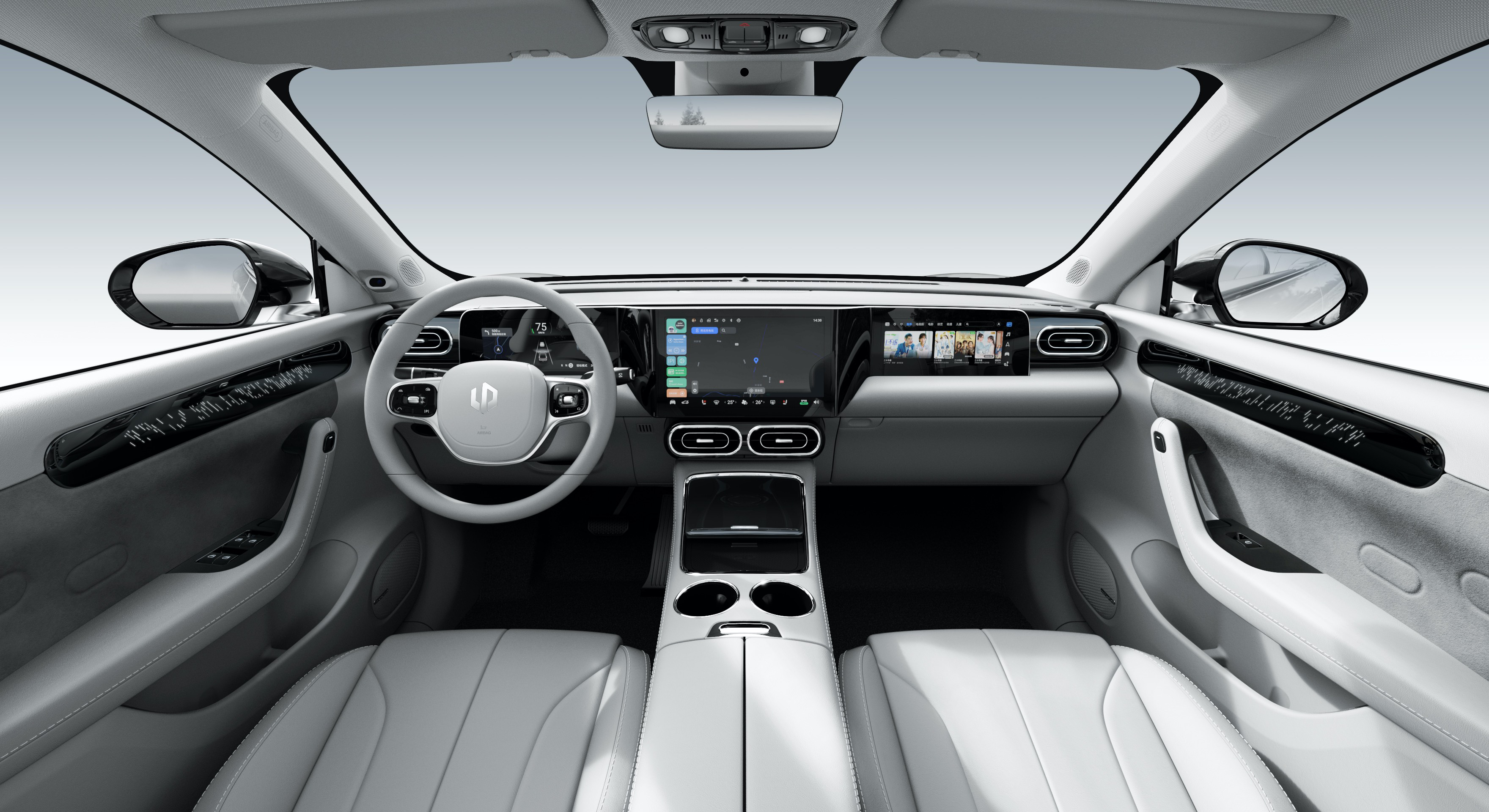 零跑C11中控搭載10.25*12.8*10.25寸超高清三聯屏,搭配科大訊飛3.5 新一代智能語音交互系統,特有的“雙客廳”模式,實現主、副駕獨立藍牙接入與雙音區語音交互,享受互不干擾的沉浸式駕乘體驗。