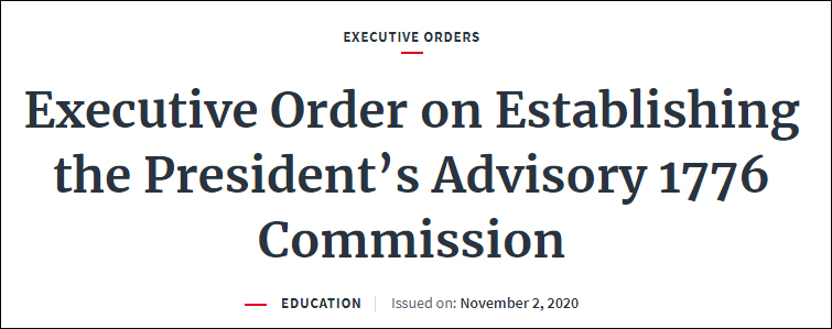 本月早些時候,特朗普簽署一項行政命令,要求建立一個“1776諮詢委員會”來抵制“修正主義課程計劃”的滲透,“讓下一代更好理解美國建國曆史和原則”。