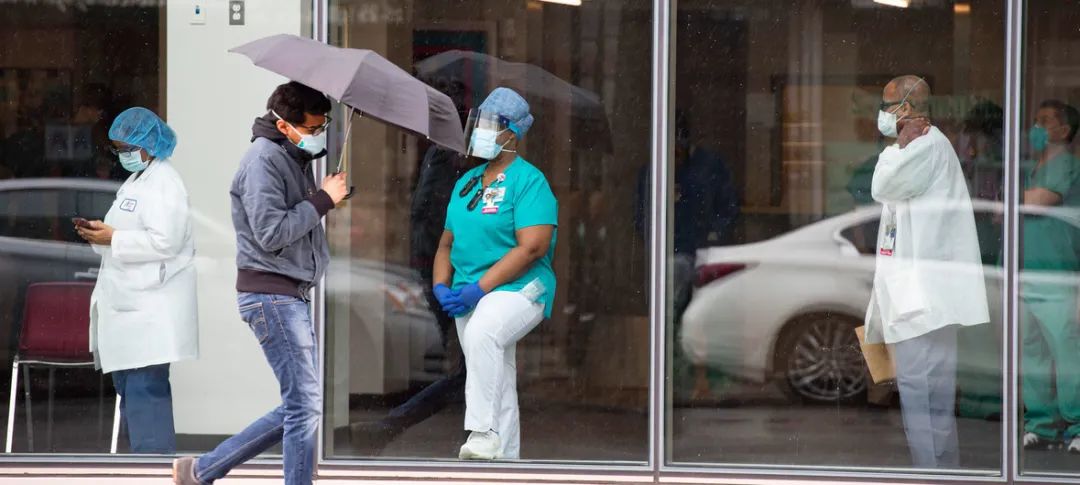 ©️ 聯合國/Evan Schneider 紐約市阿斯托里亞的西奈山醫院的醫務人員正在等待冠狀病毒的檢測。
