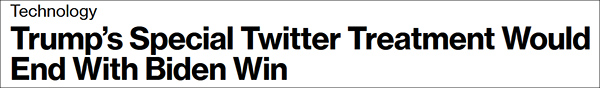 “特朗普的推特特權將隨着拜登的勝利終結”,彭博社11月5日報道截圖