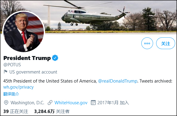 即使是在擔任總統期間,特朗普絕大部分時間也都在使用他自己的個人賬號“realDonaldTrump”發推,他控制的美國總統官方賬號基本都在轉發特朗普自己或其團隊的推文。
