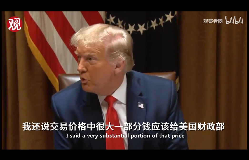 當地時間8月3日,特朗普表示,收購TikTok時交易價格中很大一部分錢應該給美國財政部