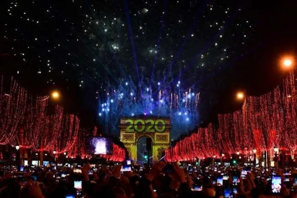 儘管法國仍處於“封城”期間,但香榭麗舍大街將於11月22日照常亮燈。圖為2020年1月1日香街跨年活動。(法新社圖)