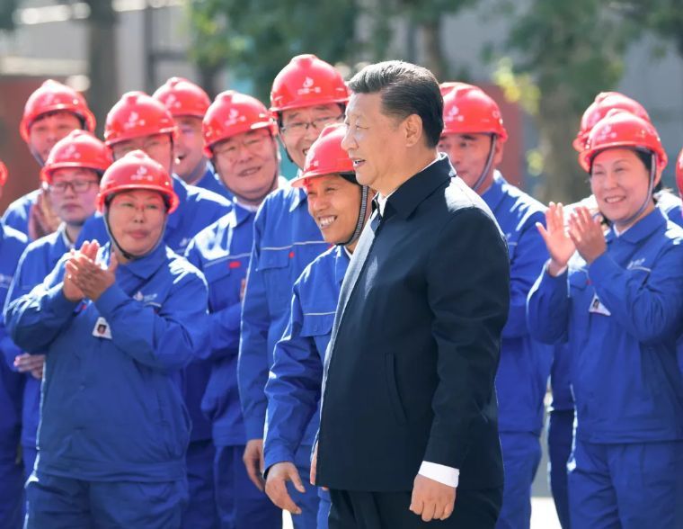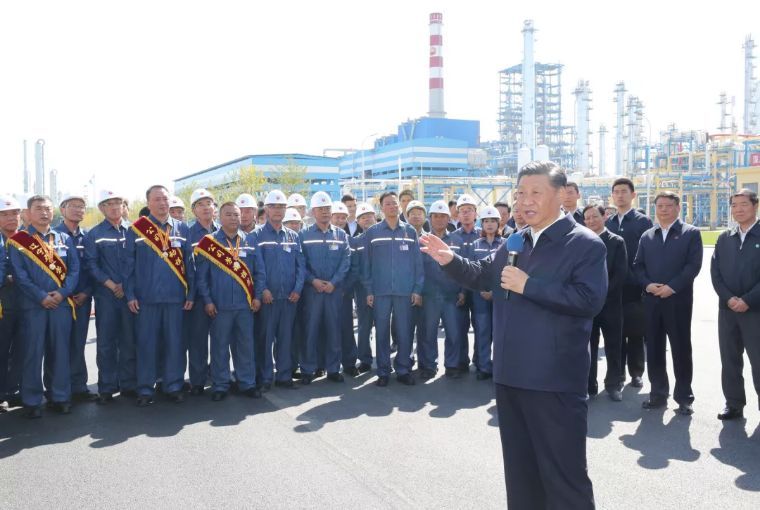 ↑2018年9月27日上午,中共中央總書記、國家主席、中央軍委主席習近平在遼寧中國石油遼陽石化公司同工人親切交流。新華社記者 鞠鵬 攝