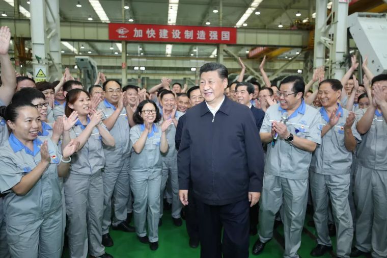 ↑2019年9月17日下午,中共中央總書記、國家主席、中央軍委主席習近平在河南鄭州煤礦機械集團股份有限公司總裝車間同工人們親切交流,鼓勵他們加強自主創新,爭創發展戰略優勢。新華社記者 鞠鵬 攝