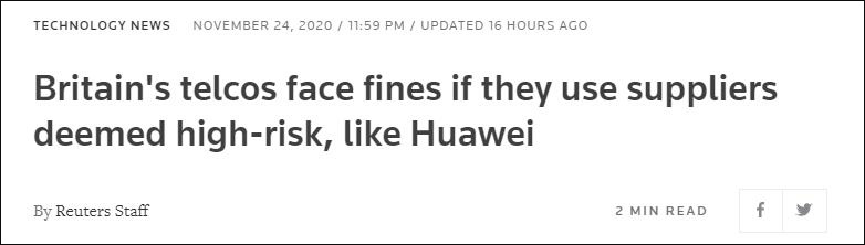 《金融時報》稱,這則新法案特別提到了英國電信(BT)、沃達豐(Vodafone)、“3”(Three),這幾家電信公司,並敦促其遵守規定否則將面臨罰款。而這些罰款可能從2021年就開始生效,或者在2027年之前生效。目前,英國這些電信公司正在政府壓力之下,更換自家的移動網絡設備,排除華為的軟件、路由器和天線等。