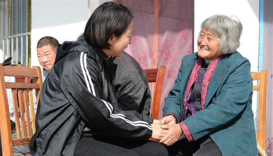 △劉雙燕在安徽省亳州市利辛縣的養老院內和老人交流。