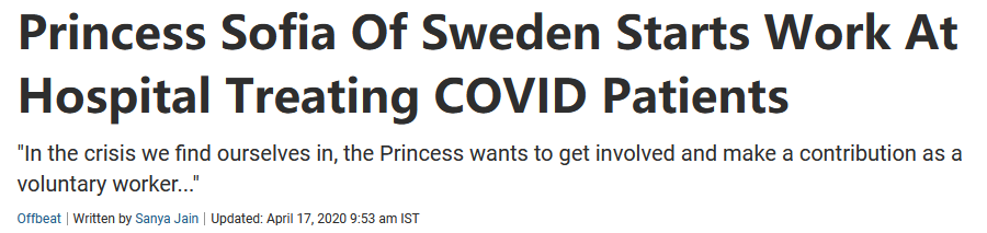觀察者網注意到,早在今年4月,瑞典王室曾發佈消息,為幫助該國抗擊疫情大流行,索菲婭王妃每週在斯德哥爾摩的索菲亞美特醫院(Sophiahemmet)擔任醫院志願者。她是以醫療助理的身份加入醫院,不會直接參與治療新冠患者,而是為醫療保健專業人員提供非醫療支持。