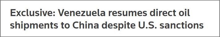 路透社獨家報道稱,委內瑞拉已恢復向中國直接運輸石油