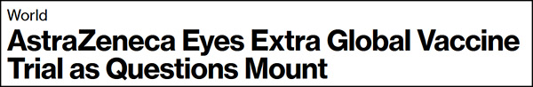 “成堆問題下,阿斯利康着眼於額外的全球疫苗試驗”,彭博社報道截圖
