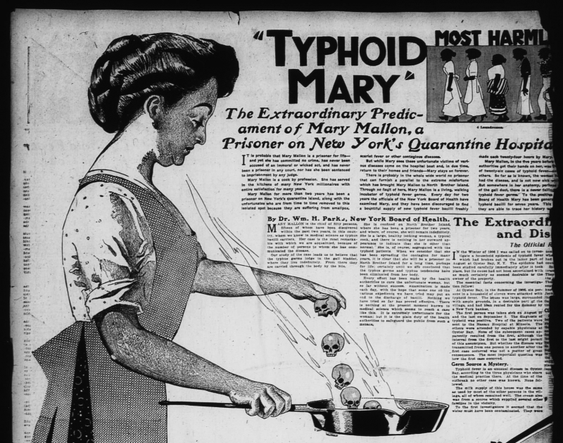 傷寒瑪麗被認為是美國歷史上首位“無症狀病原攜帶者”,也是第一個傷寒病“超級傳播者”。她於1869年在愛爾蘭出生,而後移居到美國,是一名女廚師。在她服務的美國家庭中,許多人被她感染,但她自己卻沒有症狀。
