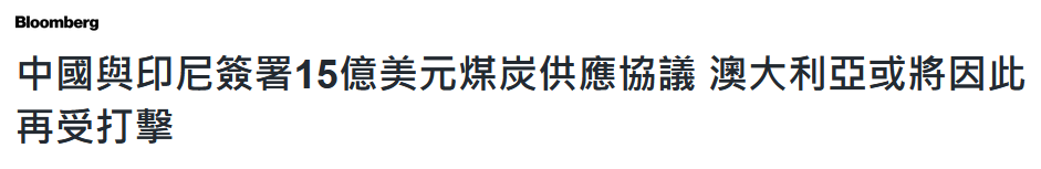 彭博社還提到,眼下正值中國與澳大利亞之間的關係持續惡化。並宣稱,隨着雙方交惡的加深,中國已將諸多澳大利亞大宗商品列入了“黑名單”。中國與印尼簽訂煤炭供應協議,澳大利亞或將因此再受打擊。