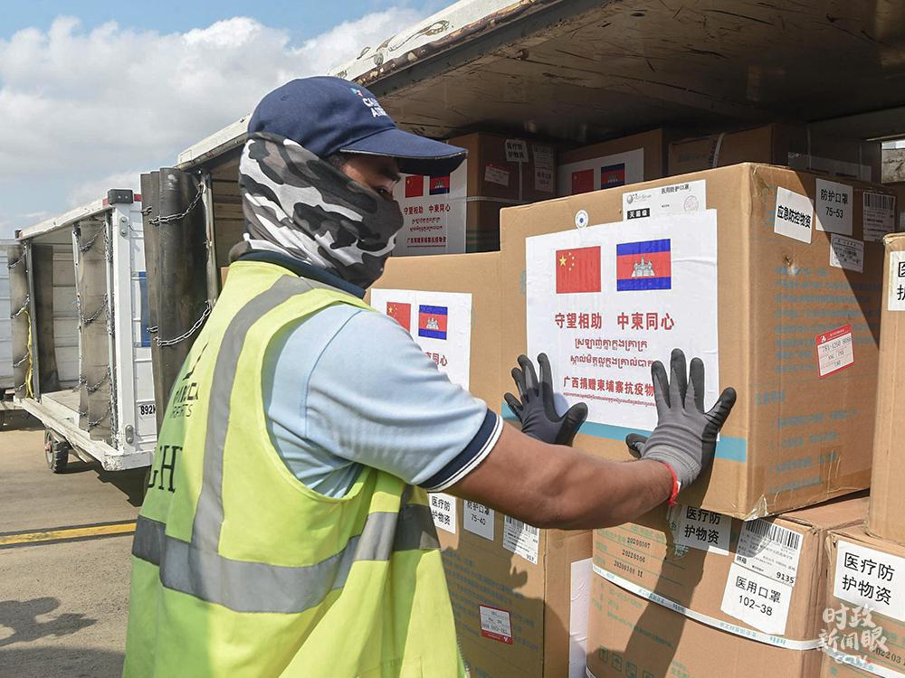 △今年 3 月份,中國援柬醫療專家組抵達柬埔寨金邊。這是捐贈的抗疫物資。