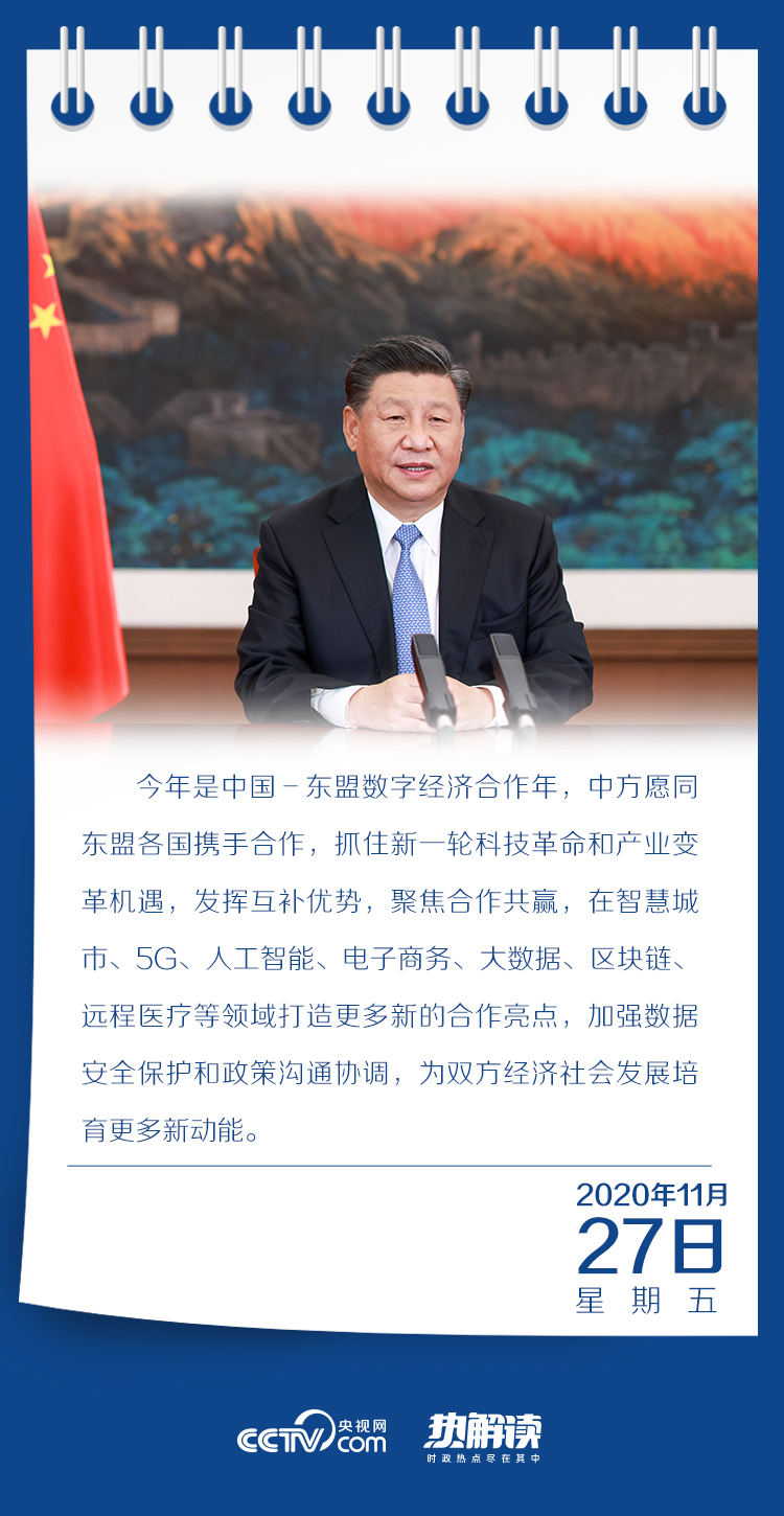 為推進中國與東盟各領域合作,維護本地區繁榮發展良好勢頭,建設更為緊密的中國—東盟命運共同體,習主席在致辭中提出“4點倡議”。其中有一點與本屆中國—東盟博覽會主題“共建‘一帶一路’,共興數字經濟”相互輝映,即:提升科技創新,深化數字經濟合作。