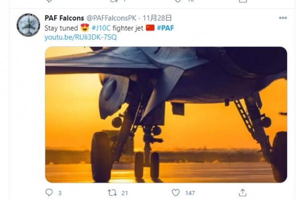 巴基斯坦媒體PAF falcon網站在其社交媒體賬號上發出了殲-10C的照片並配發文字:“敬請期待”。