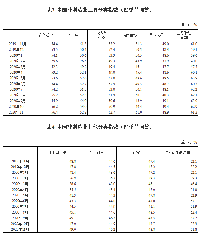 11月份製造業採購經理指數和非製造業商務活動指數雙雙上升
