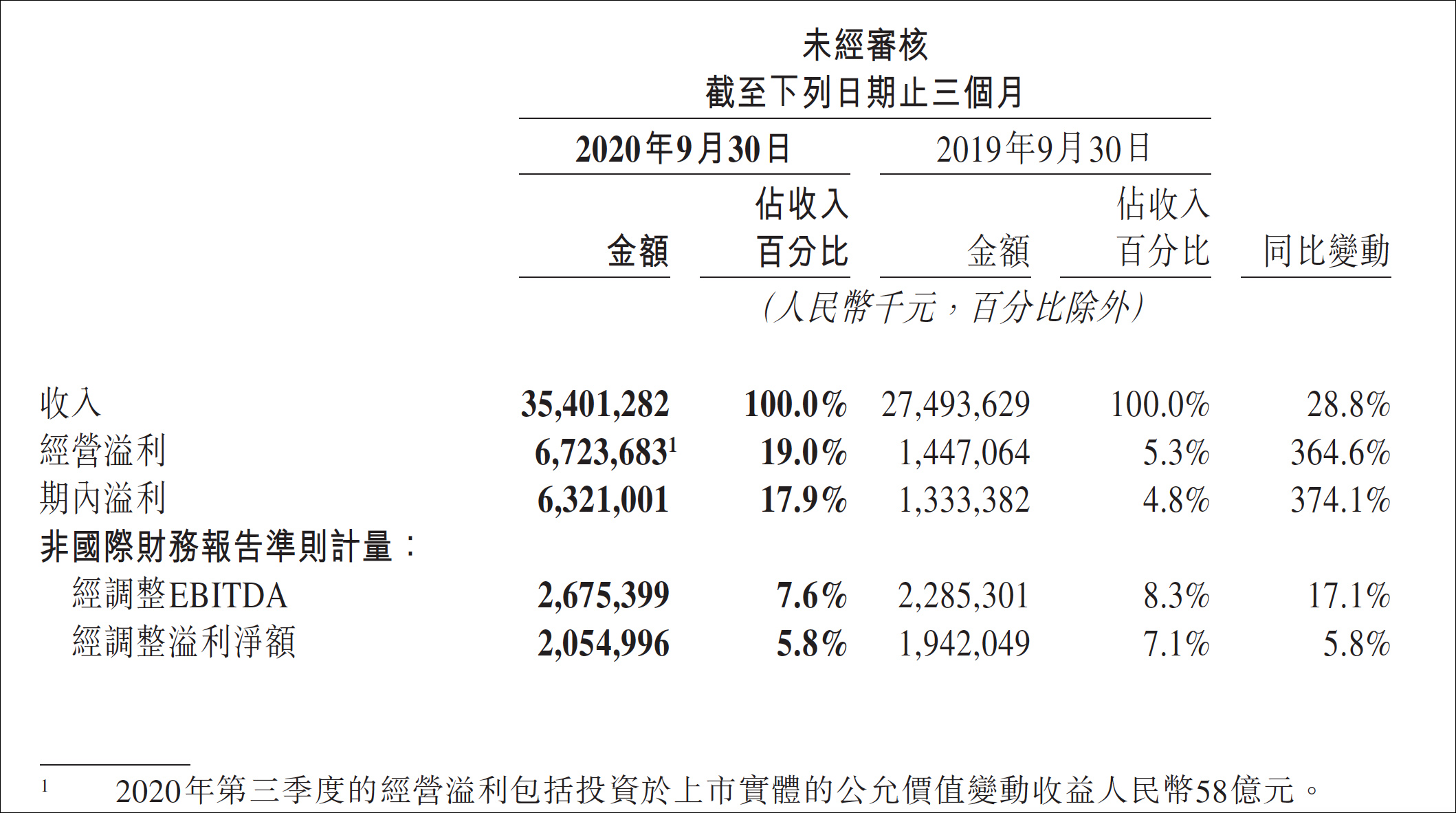 Q3美團淨利潤達63.2億,遠高於彭博預計的4.351億,同比暴漲374.10%,主要得益於公允價值變動收益人民幣58億元,**其中投資理想收益高達53億元。**調整後利潤為20.55億元,同比增長5.8%,高於市場普遍預期的10.07億元。