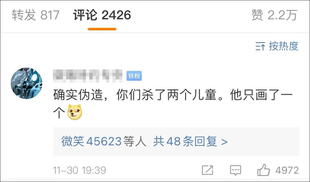 “確實,你們殺了兩個兒童,他只畫了一個。”