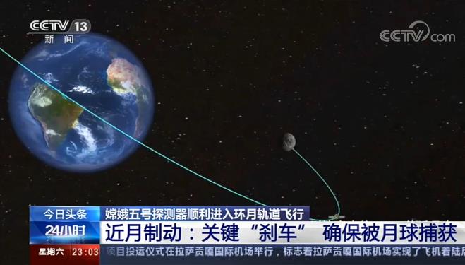 據央視新聞介紹,近月制動是嫦娥五號探測器飛行過程中關鍵的軌道控制之一。只有順利完成這一步,探測器才能進入月球軌道繞月飛行,並實現後續的着陸和採樣。