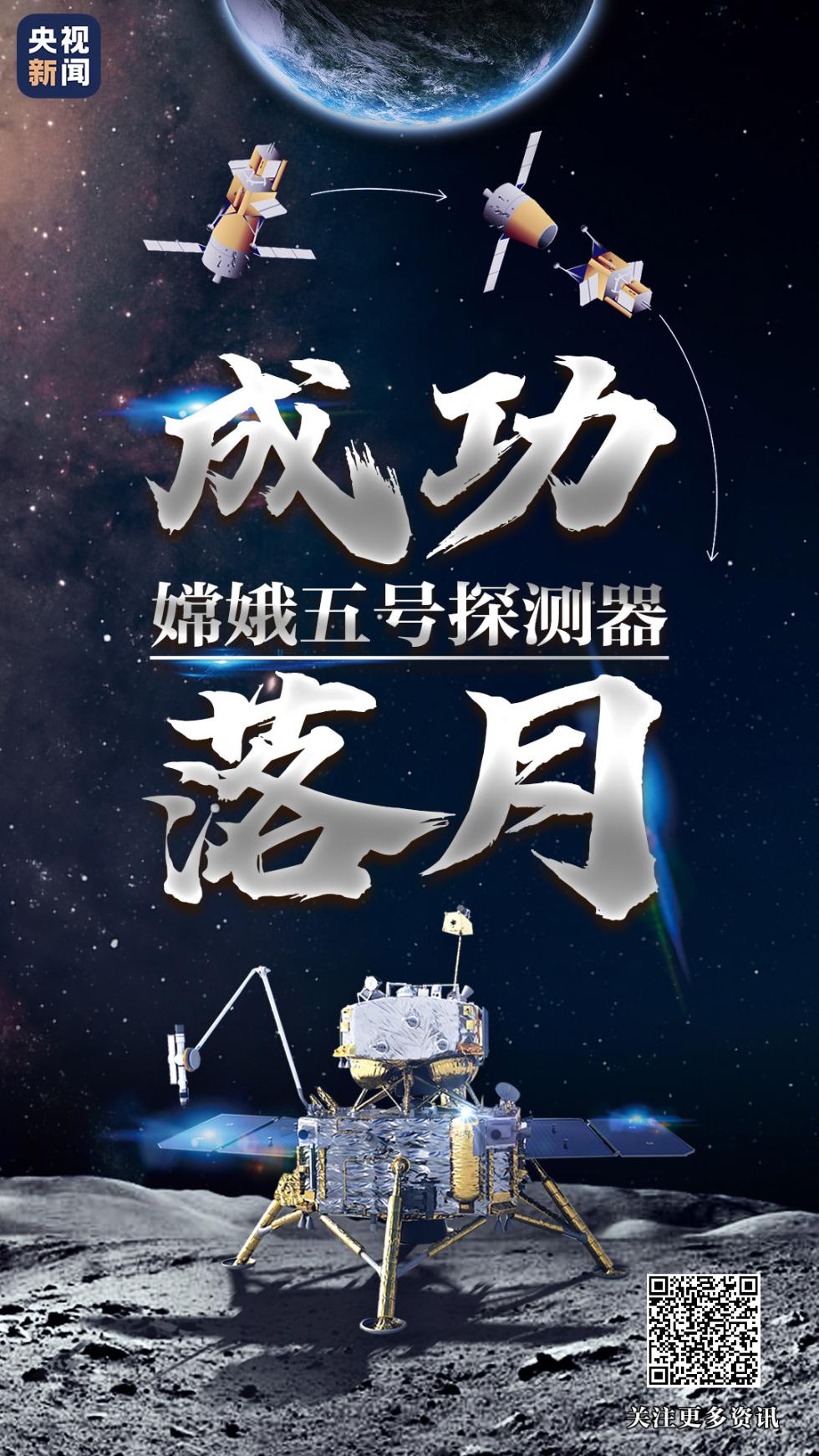 獨家視頻丨嫦娥五號探測器成功在月球正面預選着陸區着陸