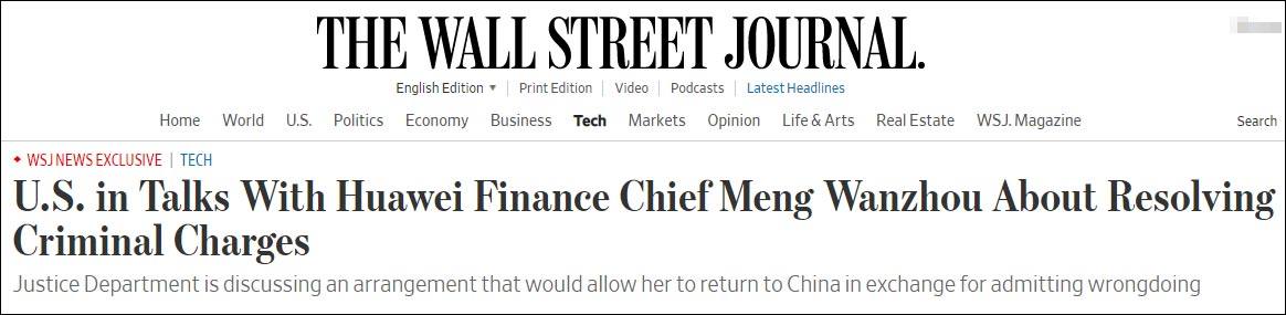 《華爾街日報》稱,孟晚舟引渡案雖允許多次上訴,但真正了結案件可能需要花上數年時間。如今,這項協議不僅能讓孟晚舟有機會重回中國,還可緩解因相關事件而持續緊張的中加關係、中美關係等政治僵局。