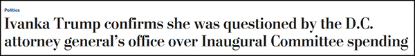 “伊萬卡確認她接受了華盛頓特區總檢察長辦公室質詢”,《華盛頓郵報》報道截圖